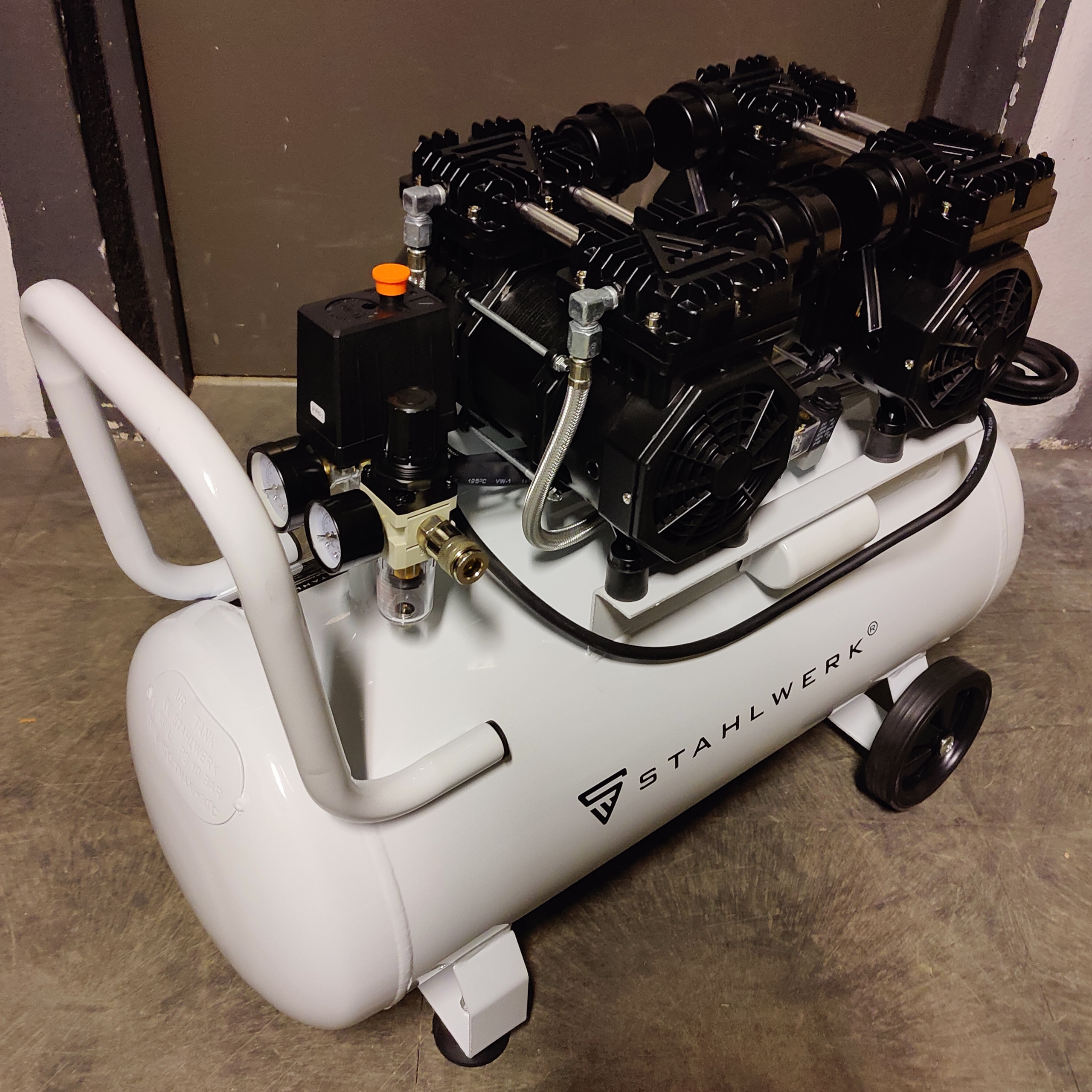 First I determined in detail which components would be necessary for an initial expansion stage. I produced sketches of the piping routes and compiled parts lists in which every connector, every meter of hose, and each valve, pressure regulator or mounting element was recorded. On this basis I calculated the costs. Only then did I submit an application to the association to provide the required funds. The compressor accounted for a sum of around 500 euros. Hoses, connectors and mounting materials added up to a similar amount. I chose a compressor of the Stahlwerk brand with a 50-liter tank and a maximum pressure of 10 bar, as these models are particularly quiet.
