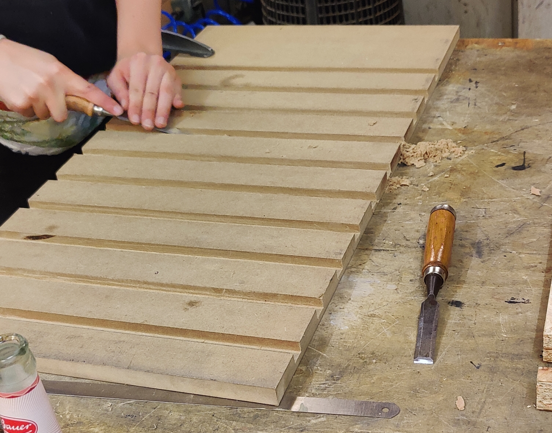 Spoilboard (July 2024) A new waste board with slots and through-holes. The slots take T-track, the holes have threaded inserts – workholding is now flexible and the board can be surfaced flat when needed. We thought this was an afternoon job. It took several days. The result is good, and c-nancy now has considerably more workholding options than before.