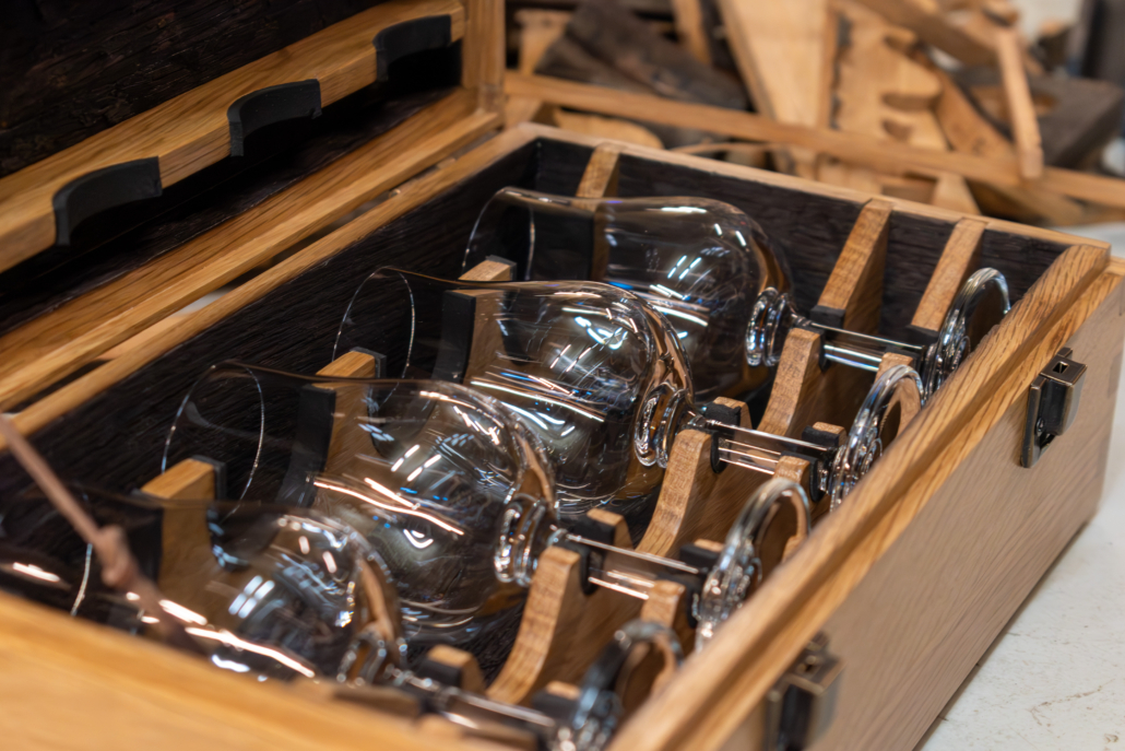 Whisky glass box from barrel staves